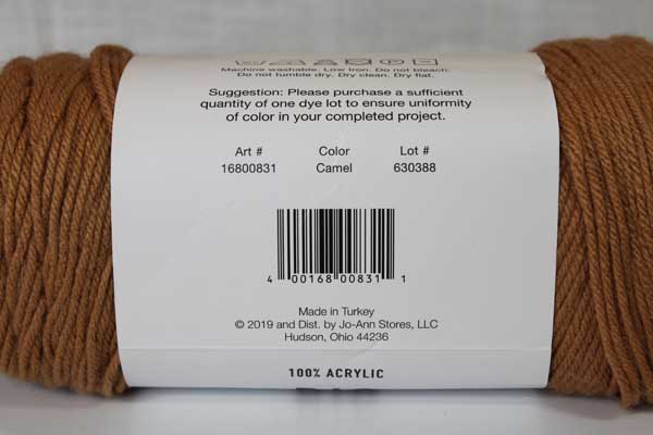 380 yards (347.472 meters) per skein of 100% Acrylic