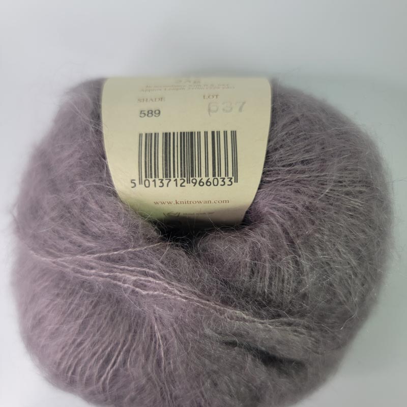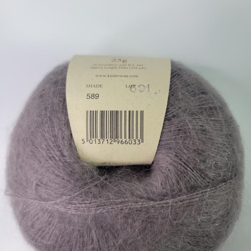 229 yards (209.4 meters) of 70% Super Kid Mohair, 30% Silk.