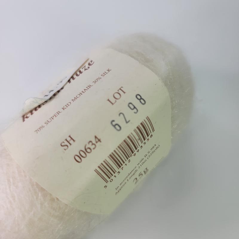 229 yards (209.4 meters) of 70% Super Kid Mohair, 30% Silk.